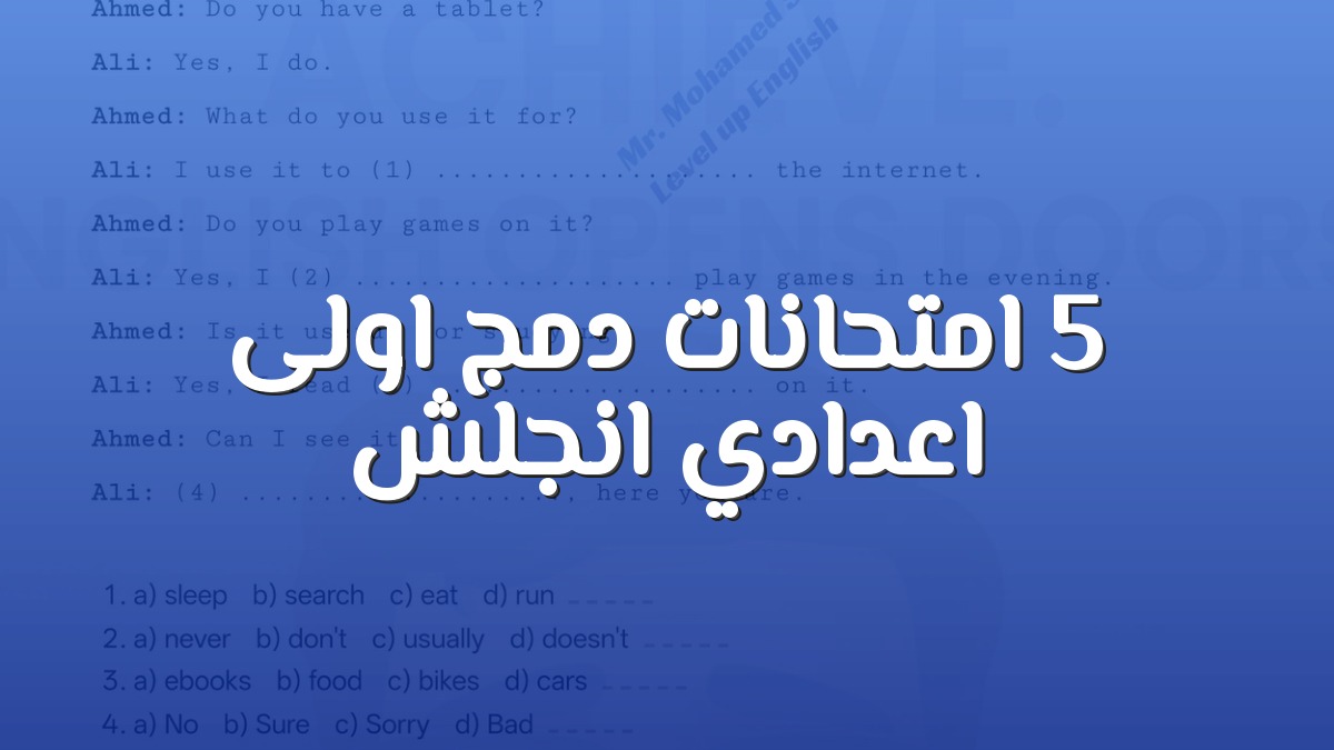 5 امتحانات دمج في اللغة الإنجليزية اولى اعدادي 2026